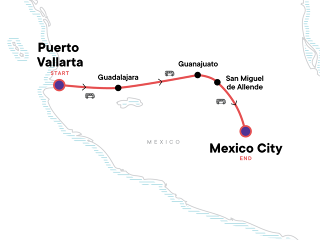 Just hearing the name Mexico is enough to conjure up images of mariachis, tequila, beaches, and heavenly food. Lucky you, this trip from Mexico's Pacific coast to its capital captures all of those things. Starting in Puerto Vallarta, you'll head to Guadalajara, a rich cultural centre with music, festivals, and nearby distilleries. Next, you’re off to the smaller towns of Guanajuato and San Miguel de Allende, where you’ll get immersed in Mexican history, not to mention its stunning scenery and architecture. Lastly, you’ll arrive in bustling Mexico City where you’ll say “adios!” to one heck of a trip.