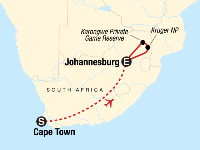Please note that this trip is a combination of multiple G Adventures tours (Kruger and Cape Town). As such, the staff and/or particular vehicles operating your tour may change between tour segments. You may also expect some group members to join or leave the tour, between tour segments.