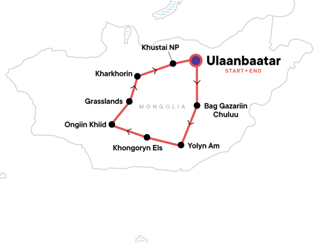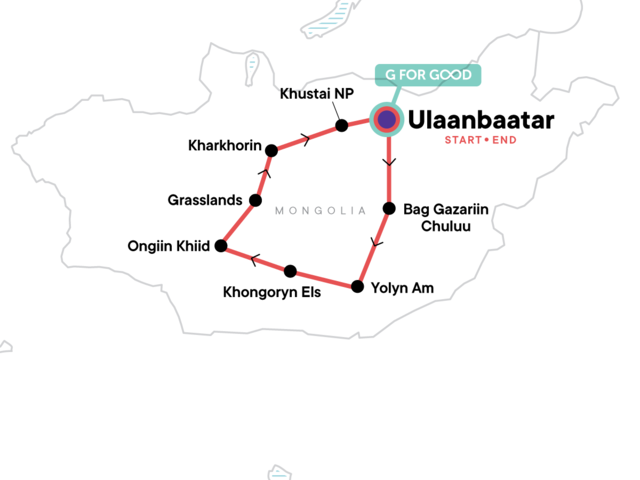 Your Welcome Moment: Welcome Moment - Meet Your CEO and Group. Choir Monastery Visit. Yolyn Am National Park stay and nature Museum visit. Gobi Desert stay. Khongoryn Els Sand Dunes and Flaming Cliffs Visit. Ongiin Khiid Monastery entrance. Mongolian Grasslands nomad camp stay. Karakorum monument entrance. Khustai National Park entrance. All transport between destinations and to/from included activities.